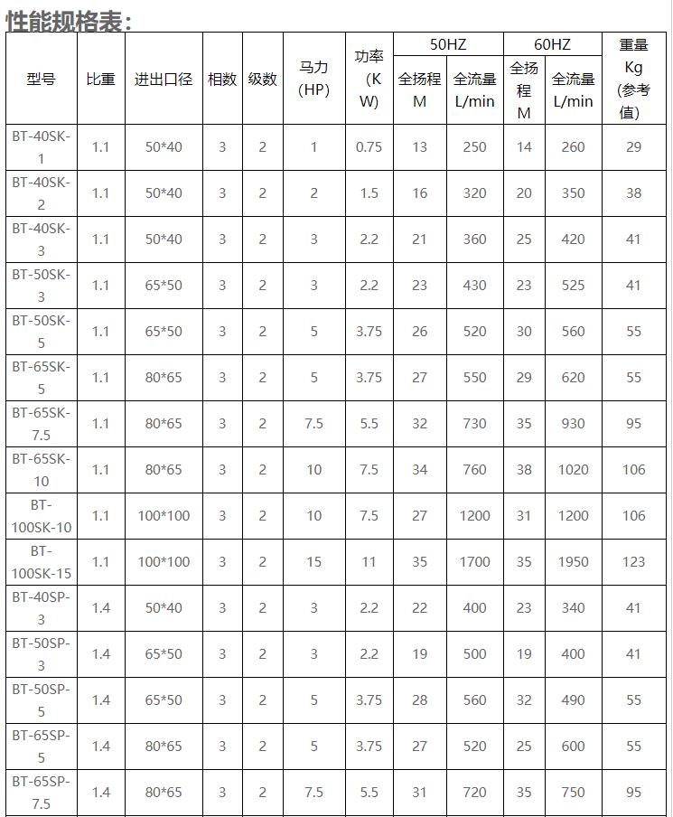 2.出入口徑:40-1-1/2”50-2" 65-2-1" 80-3"